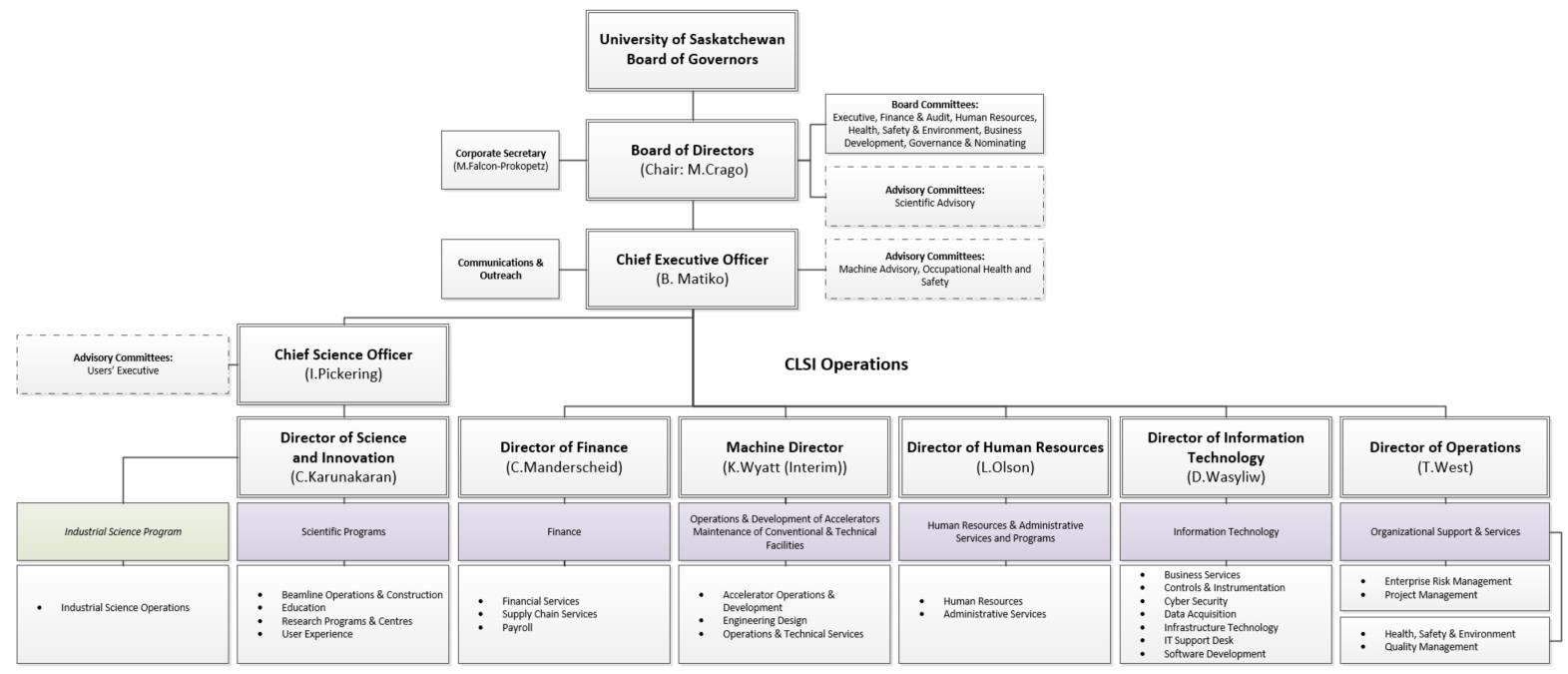 As the sole member of the corporation, the University of Saskatchewan through its Board of Governors appoints the CLS Board of Directors. Accountability to the University of Saskatchewan is maintained through the appointed positions of those occupying the University positions of the Vice President Research, and Vice President Finance and Resources, and through reporting to the University of Saskatchewan, Board of Governors at their Annual General Meeting in June, and through mid-year reports. The reports provided to the Board of Governors include the CLS annual report and annual financial statements, as well as updates on strategic leadership and resource management, governance and management structure, the operational capacity of the facility and stakeholder relations.